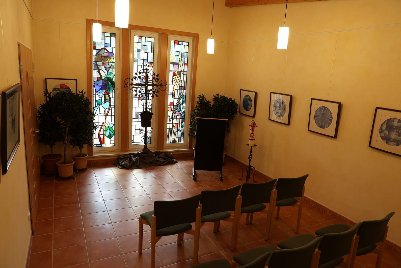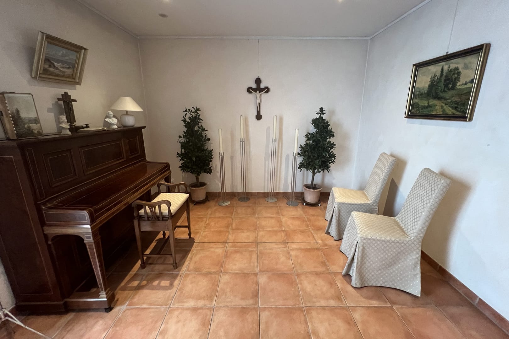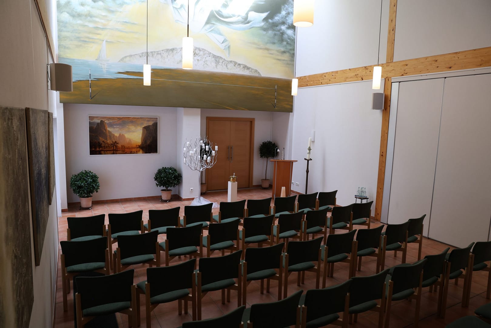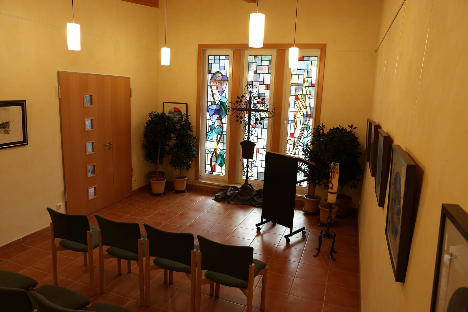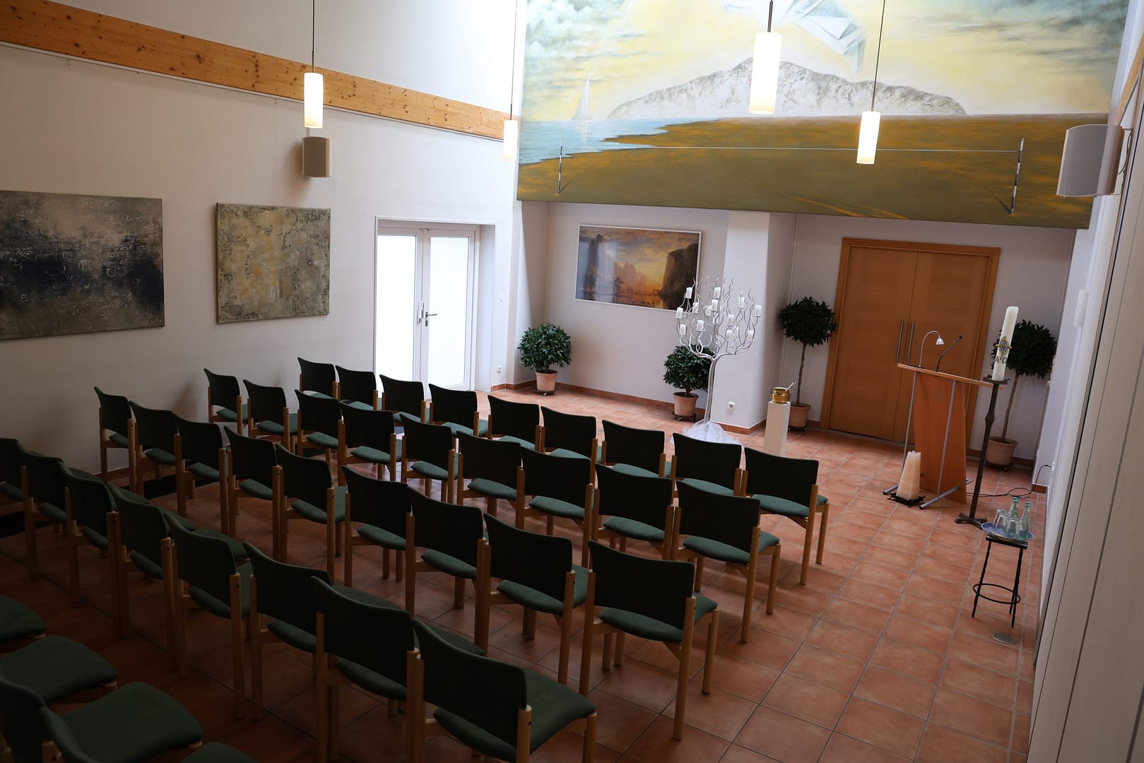Unsere kleine Trauerhalle ist ein geschützter Ort für intime Abschiede mit bis zu 30 Personen.